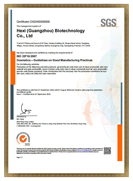 赫禧生物2大智造基地,拥有超9.7万平方米生产使用面积,配备31条自动生产线,年产量数万吨, 1.5万级无尘标准化生产车间(国际GMPC标准)生产规模居全国前列,并荣获高新技术企业、专精待新、FDA、IS0、清真 HALAL等多项国内外资质标准认定。